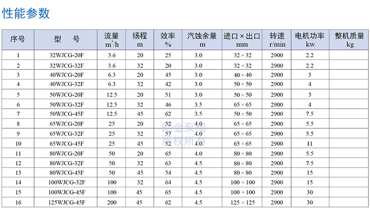 WJCG-F襯氟磁力管道泵結構緊湊、機泵一體化,全封閉、無泄露、立式結構,安裝方便無需調整,避免了機泵運輸中聯軸器錯位,安裝后須重新調整的麻煩。多形式密封材質,碳纖增強隔離套,無磁渦流熱耗,應用廣泛。可輸送含2%顆粒,粒徑<0.5mm的任意濃度的酸堿鹽及有機溶濟。